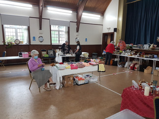 We had a successful day at the table top sale organised at the Parish hall by the "Drop In" and St James Church, as you can see from the photo we had lots of prizes donated and made over £98.00 profit with 50% shared with the Drop in and the Church,